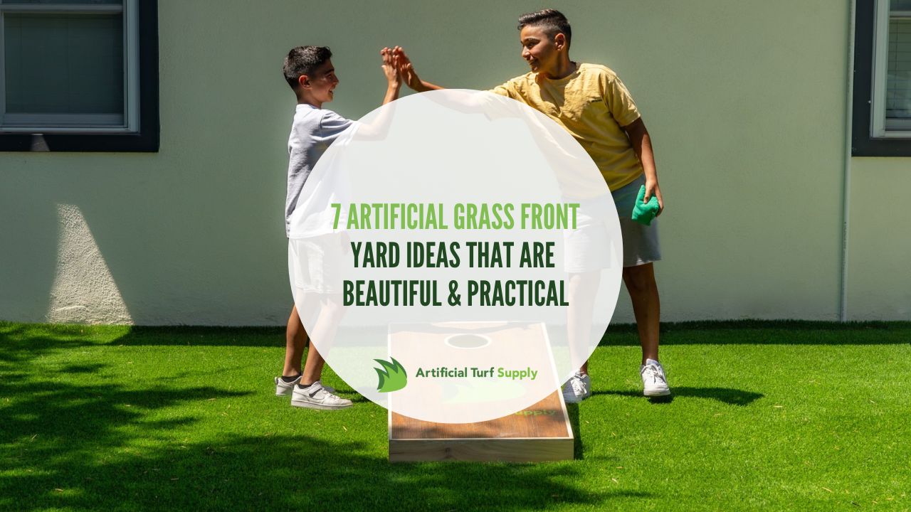 Today, we’re ditching your mower and dropping those water bills. And how, my friends, are we doing that? By checking out 7 artificial grass front yard ideas that are as beautiful as they are practical. I’m talking about leveling up your lawn’s lushness, making your yard more modern, and a few other turf-tastic inspo ideas.